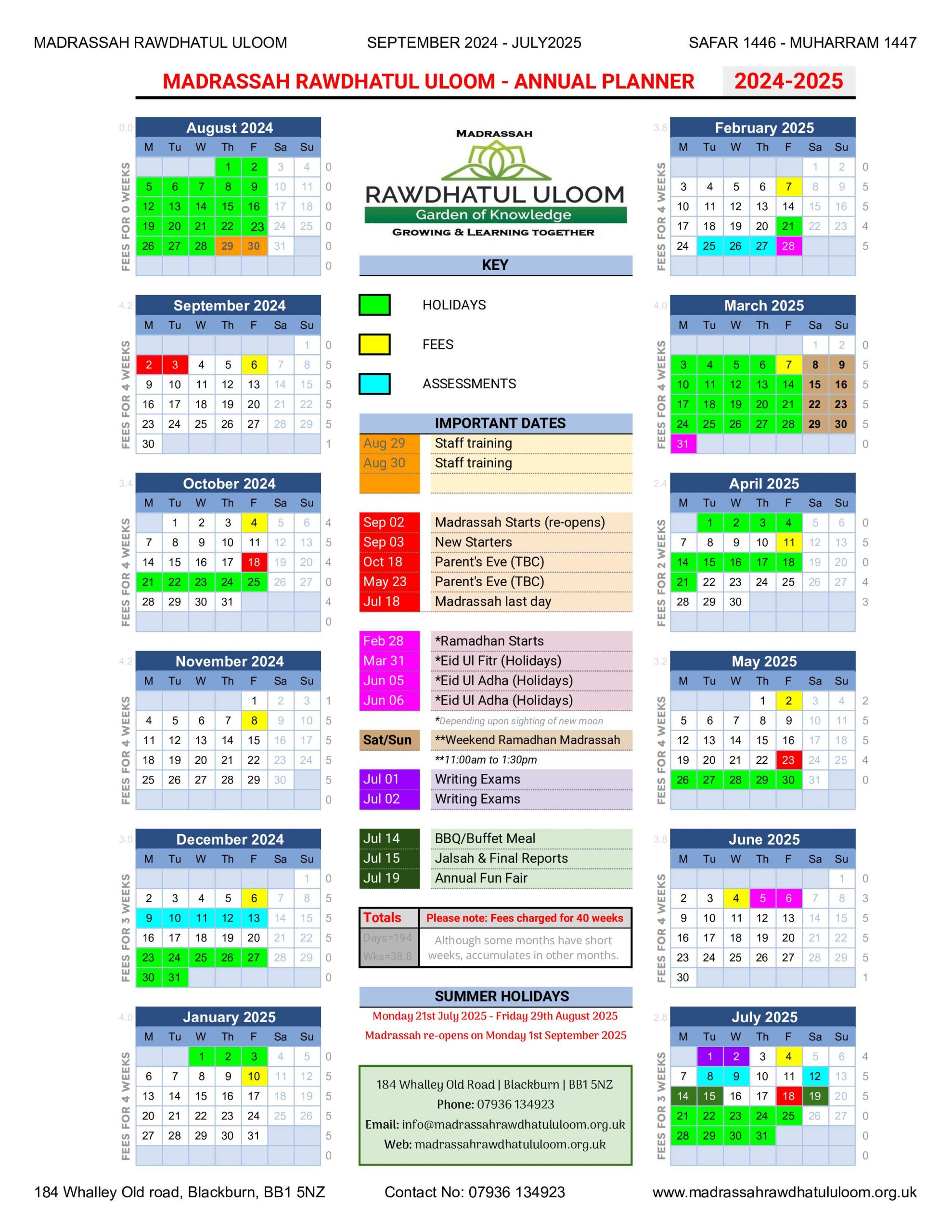 Madrassah Please click here to download our full year calendar.